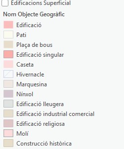 Description: <DIV STYLE="text-align:Left;"><DIV><DIV><P><SPAN>Edificació , pati, plaça de bous, edifici singular (tm4_0056_edificacion_s), caseta, hivernacle, marquesina, ninxol, edificació lleuguera (</SPAN><SPAN STYLE="font-size:8pt">tm4_0057_edificacionligera_s</SPAN><SPAN>), edificació industrial comercial (tm4_1513_edindustrialcomercial_s), edificació religiosa (tm4_1516_edificacionreligiosa_s), Molí (tm4_1519_molino_s), Construcció històrica (tm4_1555_construccionhistorica_s).</SPAN></P><P><SPAN>Consultar catàleg d'objectes geogràfics per veure les especificacions.</SPAN></P><P><SPAN>https://apps.caib.es/sites/icgibinfo/es/base_topografica_de_las__islas_baleares_btib/</SPAN></P></DIV></DIV></DIV>